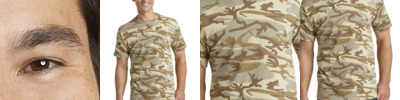 - Black Leopard, Granite Heather, and Vintage Camo are 60/40 combed ring-spun cotton/polyester